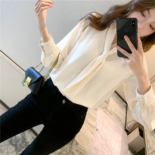 Lace Lace V-neck Short-sleeved White Shirt Woman