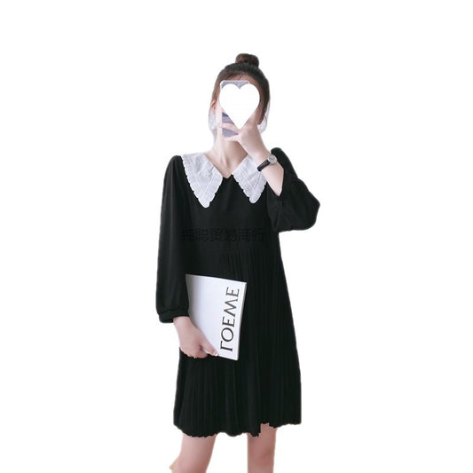 Doll Collar Dress Mid-length Maternity Long Sleeve