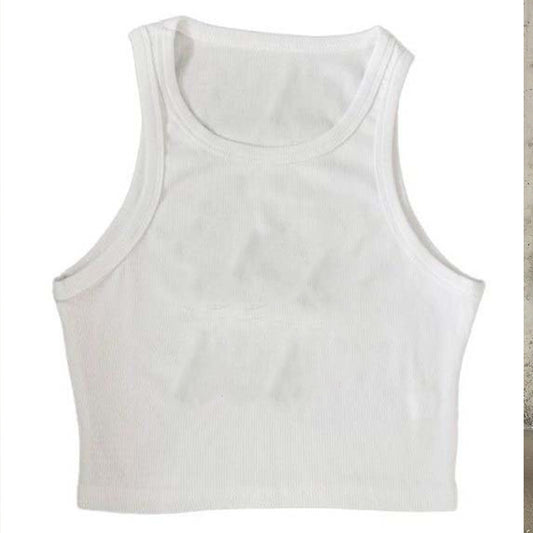 Dark Sleeveless Round Neck Pattern Printed Bare Midriff Slim Fit Women's Vest